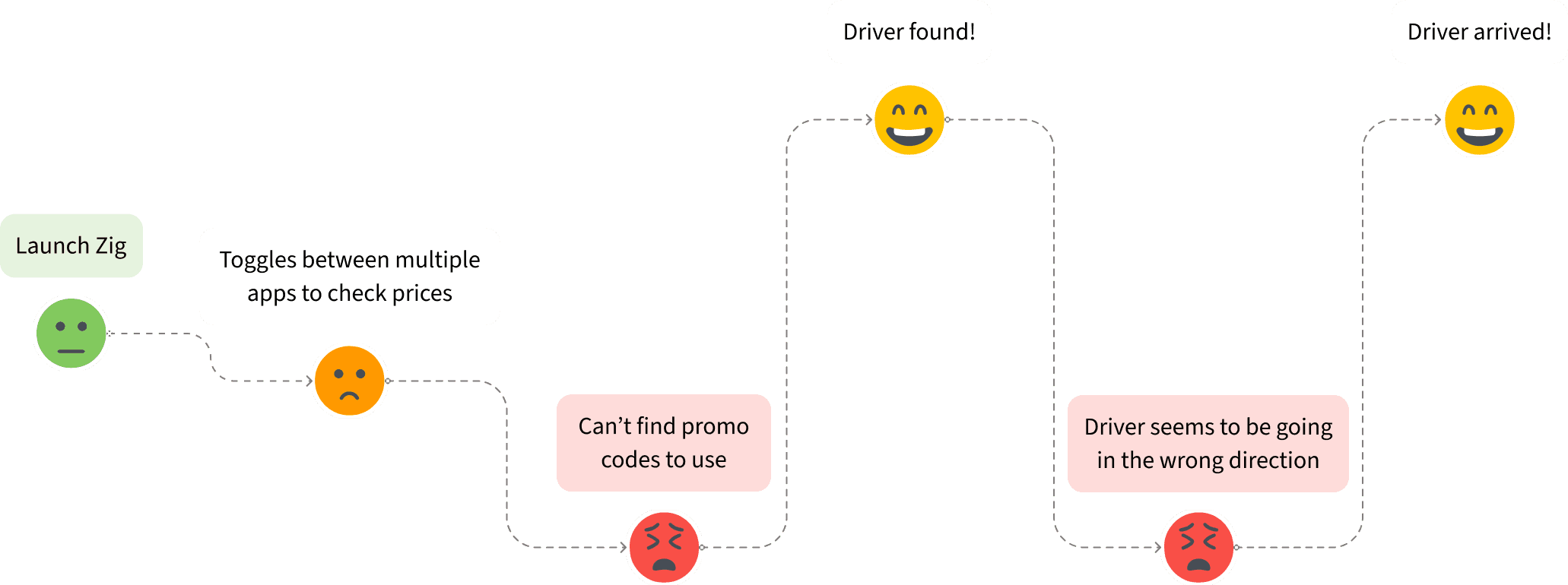 Through user journey mapping, I visualized the entire ride-booking experience, from opening the app to reaching their destination. By analysing each step, I pinpointed moments of friction that could lead to frustration and potentially drive users to switch to competitor apps.