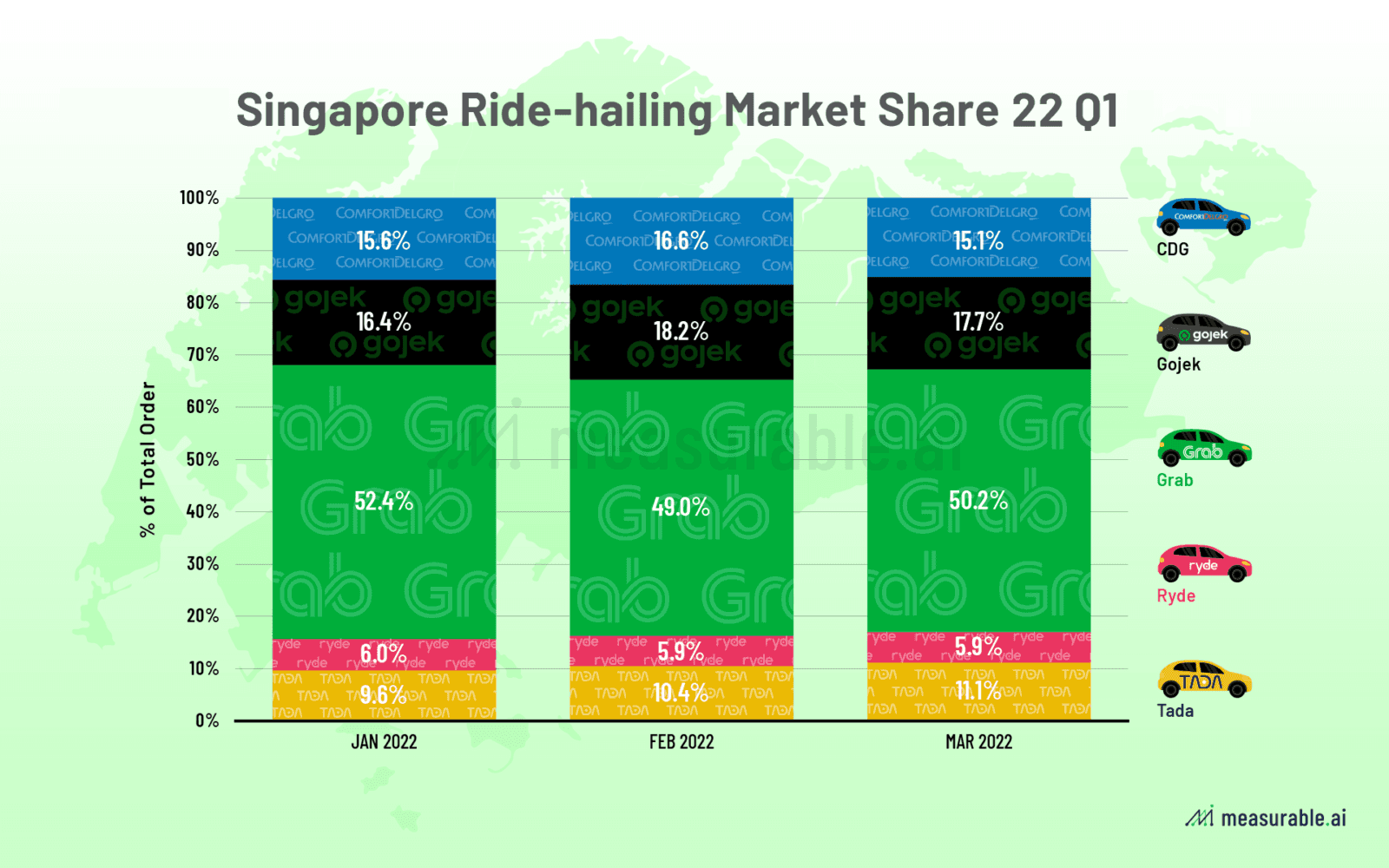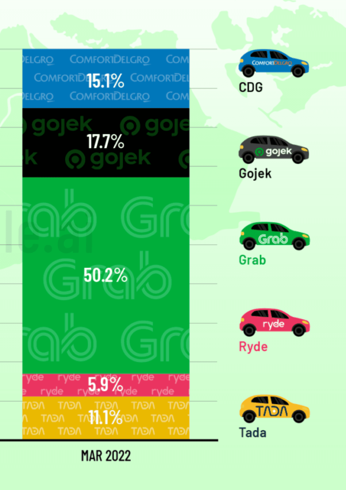 Dominated by players like Grab and Gojek, these companies have built large user bases with strong brand loyalty. However, ComfortDelGro, a leading Singaporean taxi company, struggles to compete, capturing only 15.1% of the market share as of March 2022.